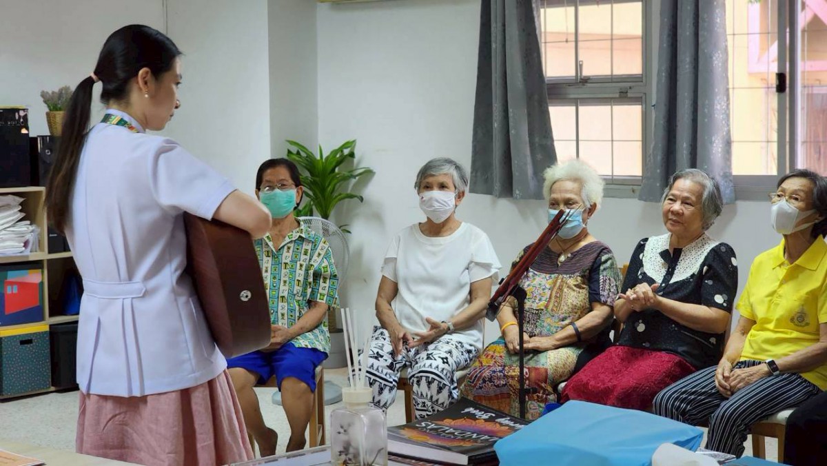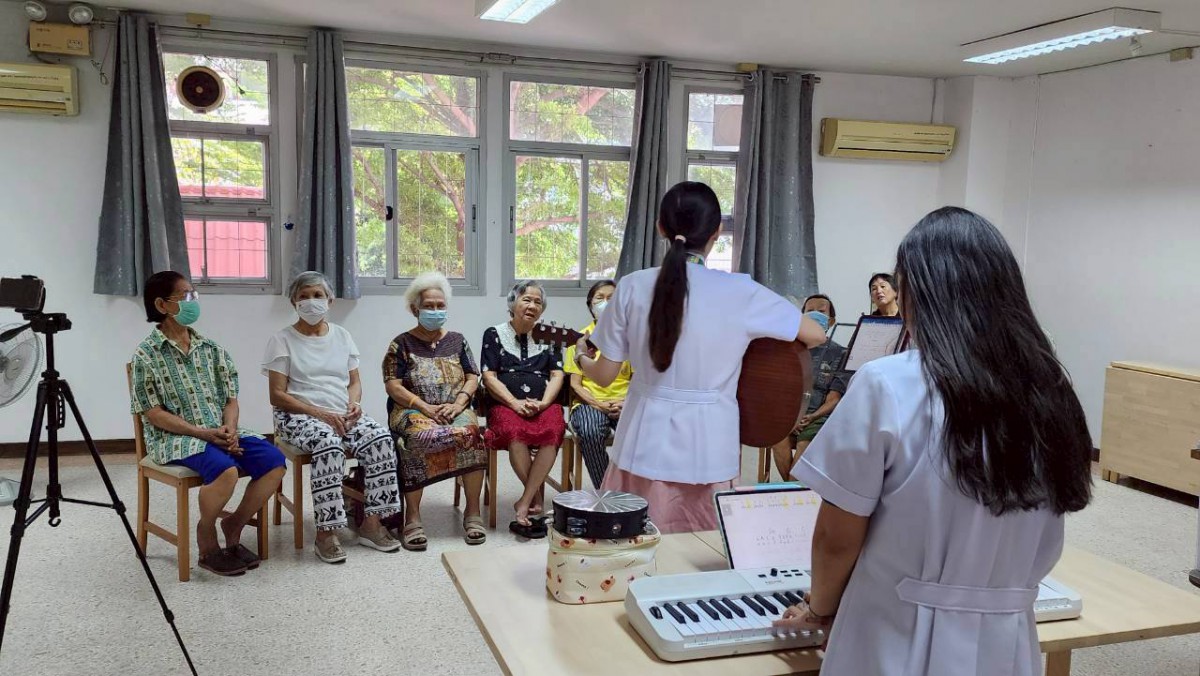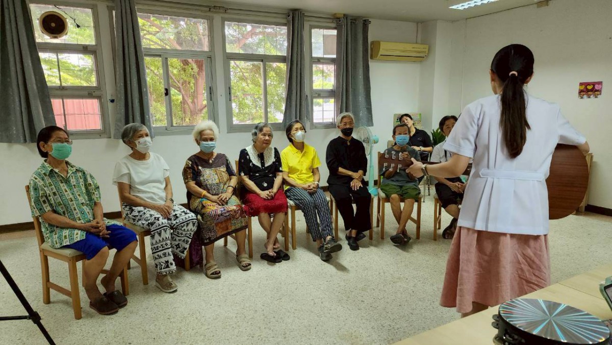 ศพส.บ้านบางแค โดยนักจิตวิทยา ให้การต้อนรับนิสิต ปริญญาโท มหาวิทยาลัยขอนแก่น สาขาดนตรีบำบัด จำนวน 2 คน เข้าทำแบบทดสอบร่วมกับผู้สูงอายุ เรื่องผลของดนตรีบำบัดแบบกลุ่มต่อการส่งเสริมความจำขณะทำงานของผู้สูงอายุ และจัดกิจกรรมดนดรีบำบัด ร้องขยับ รับจังหวะร่วมกับผู้สูงอายุ เพื่อติดตามคำร้อง และจังหวะ การสลับการตอบสนอง (task switching) ระหว่างการร้องและการเคลื่อนไหว และการจัดเก็บเรียกคืนข้อมูลจากความจำขณะทำงาน ในลักษณะของการประสานการรับรู้และการตอบสนองที่ซับซ้อน ณ ห้องกิจกรรมชั้น 2 ศพส.บ้านบางแค