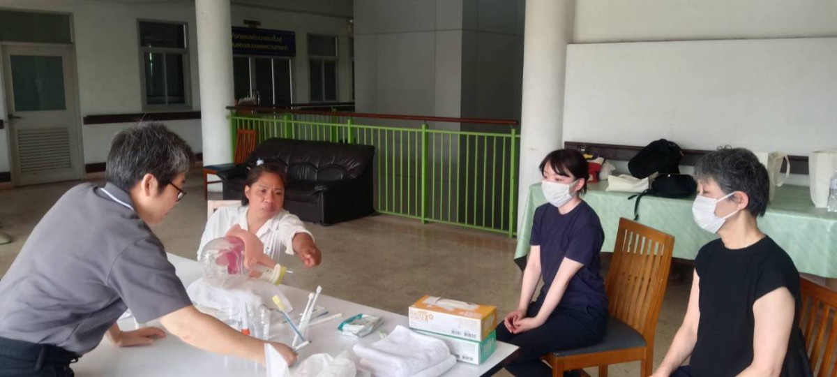 เข้าสาธิตและฝึกอบรม พร้อมติดตามและสัมภาษณ์ การดูแลรักษา ช่องปากผ้สูงอายุ แบบญี่ปุ่น สำหรับผู้ดูแล (caregiver)  โดยทีมบริษัท ฮาคุโซ เมดิคอล คอร์ปอเรชั่น จากประเทศญี่ปุ่น