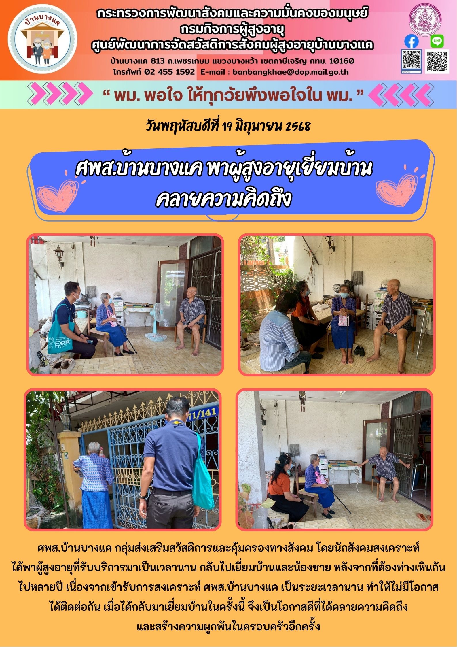 19มิ.ย.68 ศพส.บ้านบางแค พาผู้สูงอายุเยี่ยมบ้านคลายความคิดถึง
