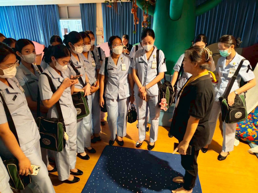 ผู้อำนวยการ ศพส.บ้านบางแค (นางสาวสุทธิรัตน์ โทชนบท) พร้อมด้วยข้าราชการ เจ้าหน้าที่ ให้การต้อนรับ คณะอาจารย์ และนักเรียนพยาบาล วิทยาลัยพยาบาลกองทัพบก
